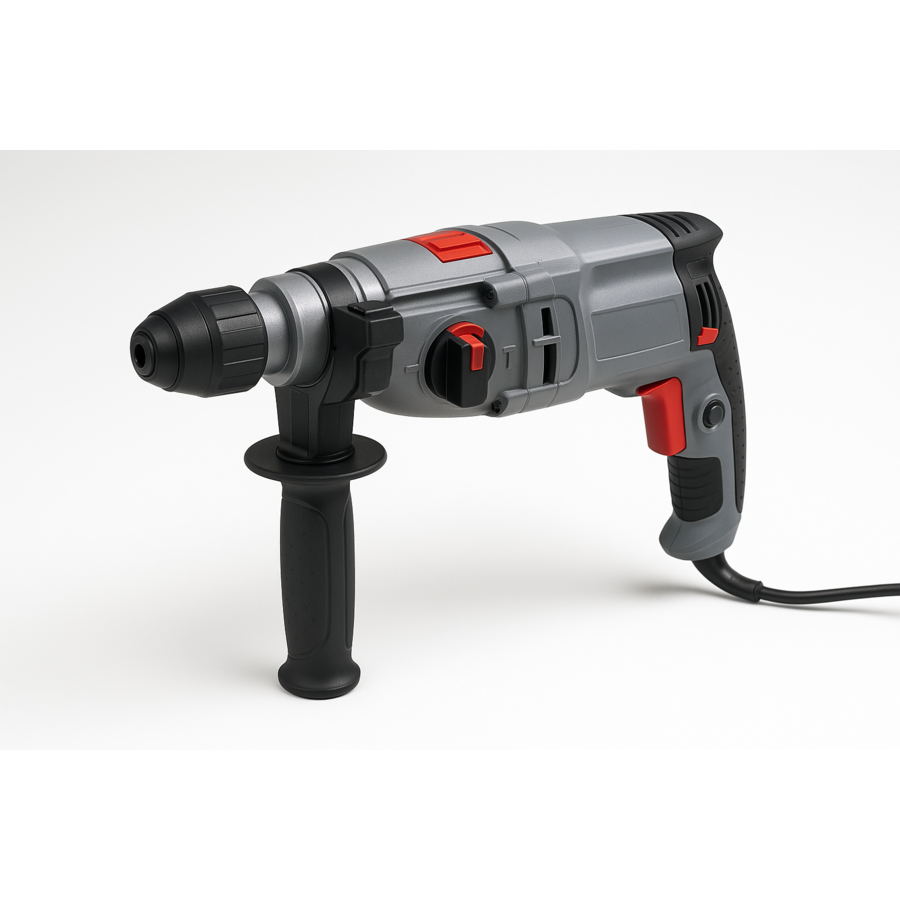 Perceuse-marteau professionnelle pour béton, bois et acier. Moteur renforcé et poignée anti-vibration.